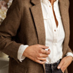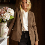 Notre blazer Achille dans les tons marrons, saura apporter de l’élégance et de la chaleur à vos tenues. Il apporte toujours le petit plus à une tenue simple. À porter au dessus d’une jolie blouse ou chemise dans les ton écru.