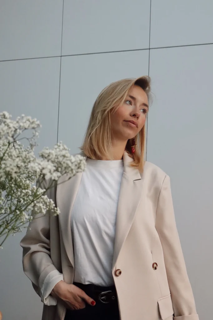 Le Blazer Oscar, à la coupe large, incarne l’élégance sans effort pour un effet chic décontracté. Ses tons crème et sa matière en lin apportent une touche naturelle et lumineuse qui adoucissent le teint