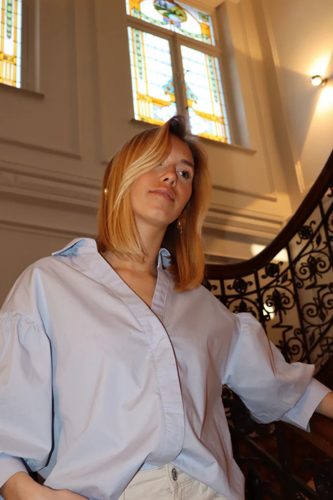 La blouse Juliette est pensée pour celles qui aiment les volumes audacieux et la douceur des tons clairs. Un pièce de caractère qui accompagne vos gestes avec une allure résolument aérienne.