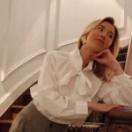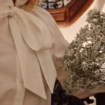 La Chemise Bonnie, 100% coton,  prouve que la perfection réside dans le détail. Son nœud et son col rompent avec la linéarité traditionnelle d’une chemise classique, insufflant une touche de féminité et de poésie.