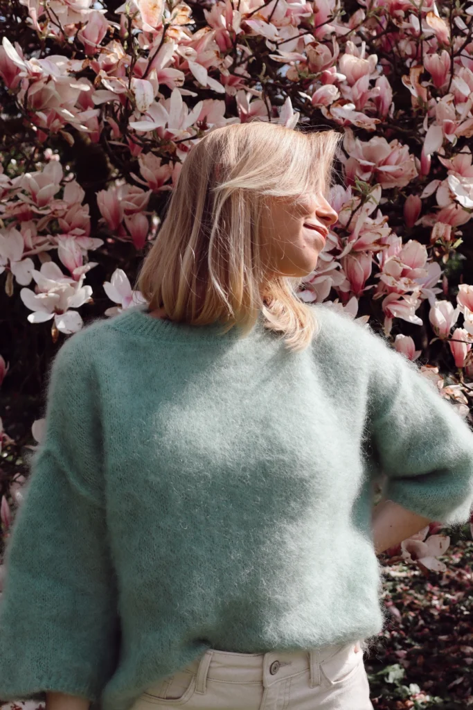 Entièrement confectionné en Italie, le pull Odile allie la noblesse du mohair à une coupe trois-quarts raffinée. Une pièce solaire et aérienne, indispensable pour illuminer votre vestiaire de mi-saison.