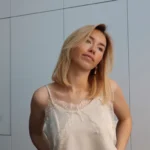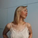 Un souffle de soie et de dentelle. Ce top couleur champagne, à la fluidité aérienne, effleure la peau avec une sensualité discrète. Une teinte qui se fond aisément dans chacune de vos tenues.